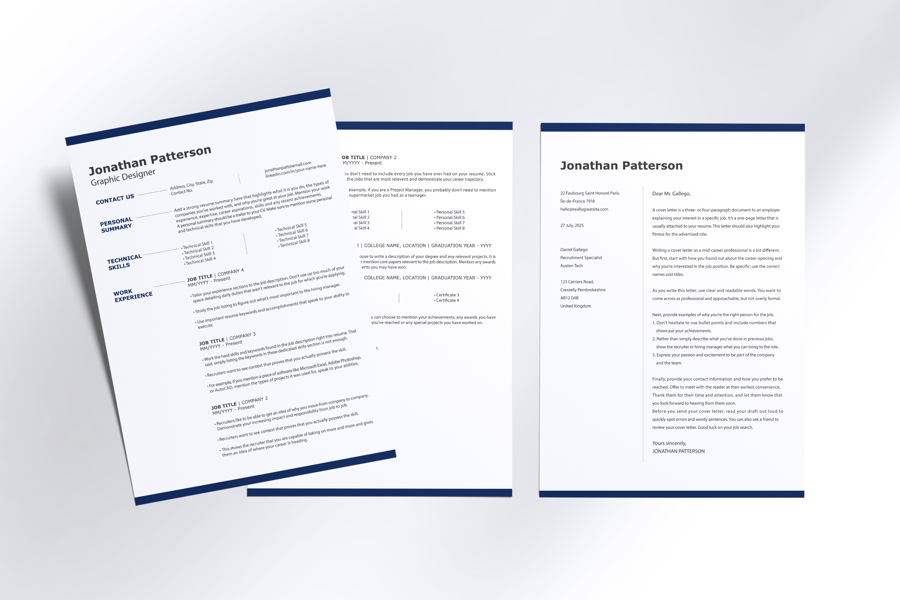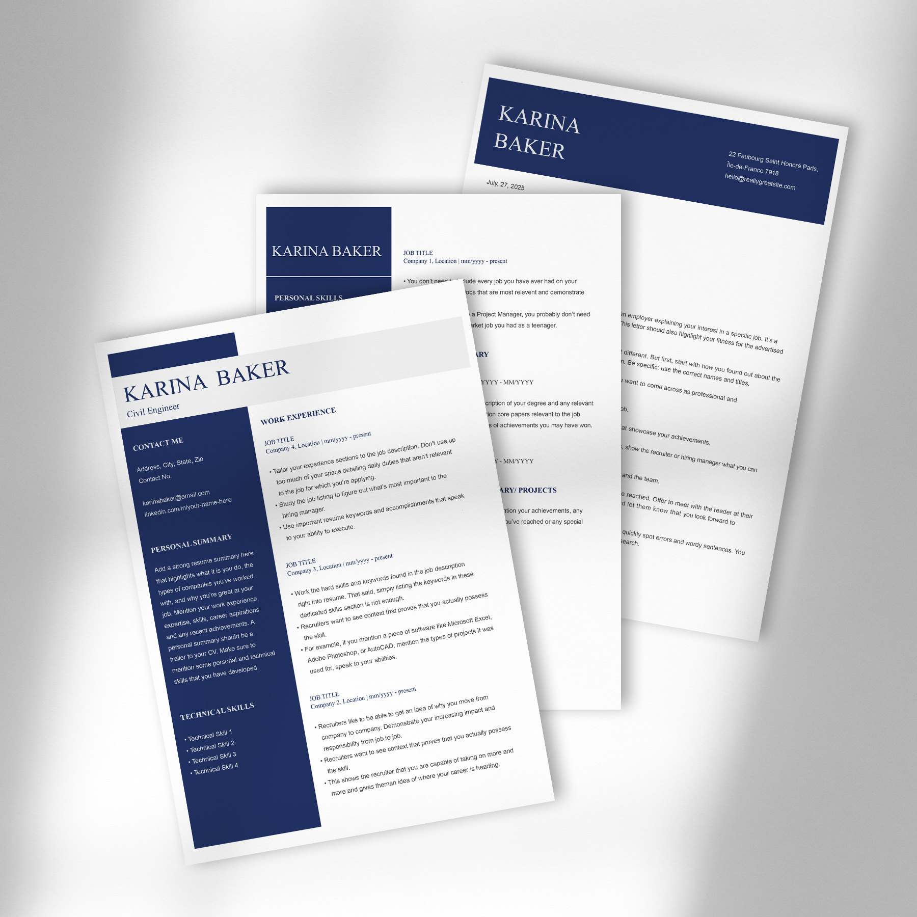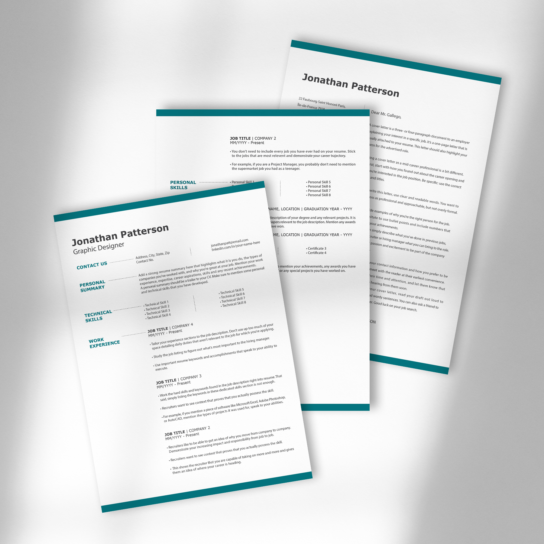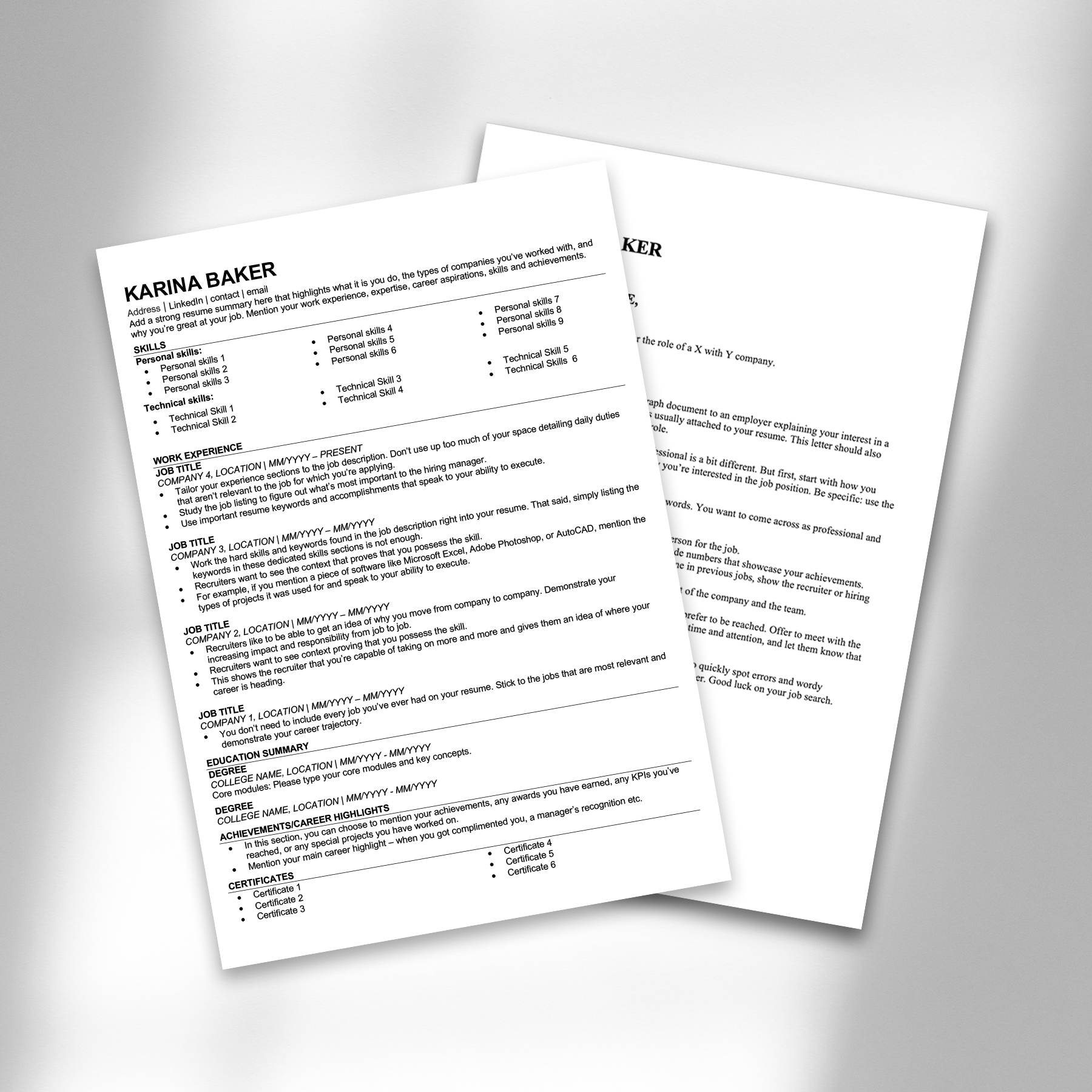 Each template kit has 2-page Resume Template and a 1-page Cover Letter Template.