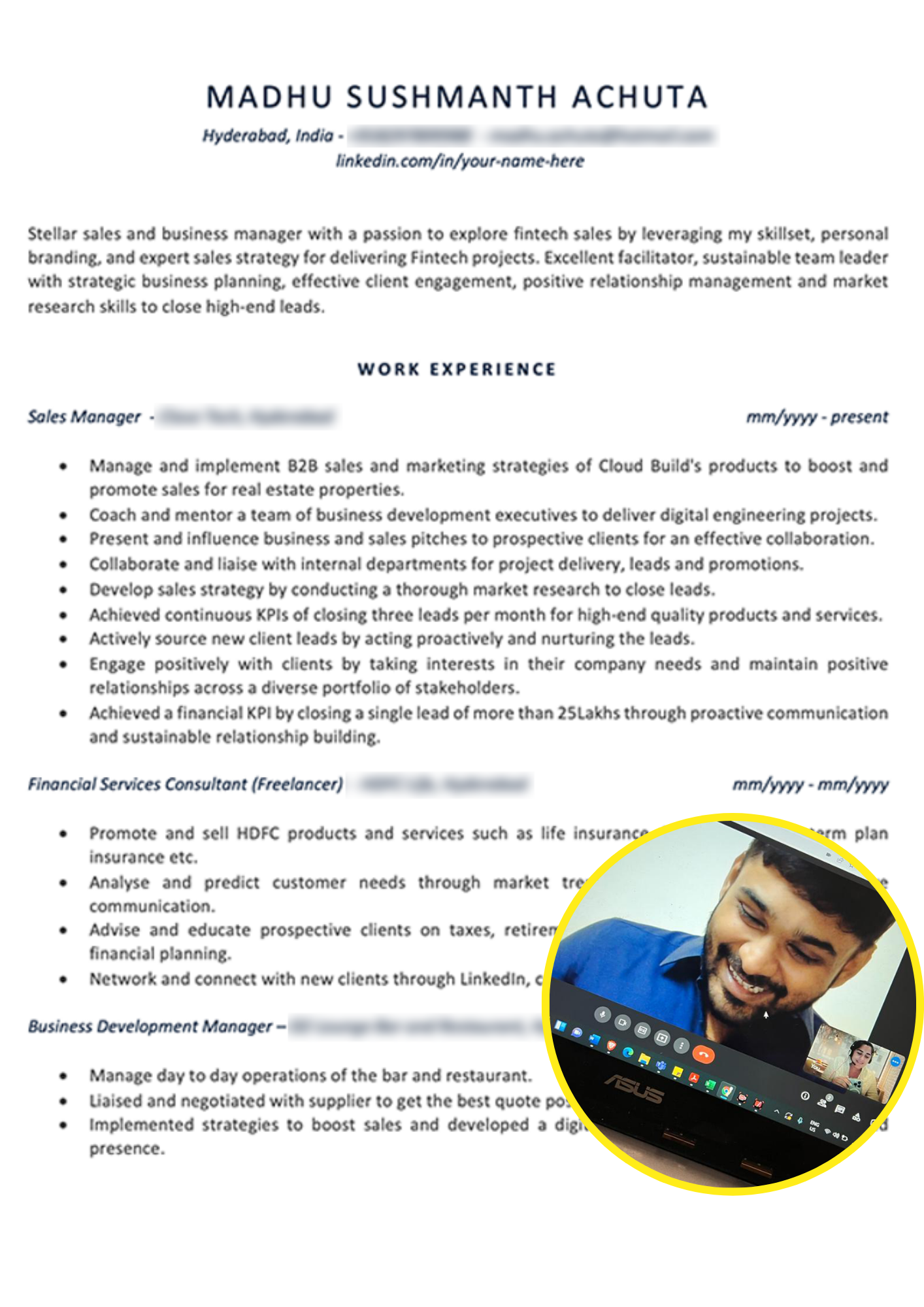 Thank you would be an understatement ... I am falling short of words to put it into words. My excitement has reached no heights... Your ATS-friendly resume template works wonders... I started getting replies from companies... Look no more, 100% recommended. It's really a deallll!