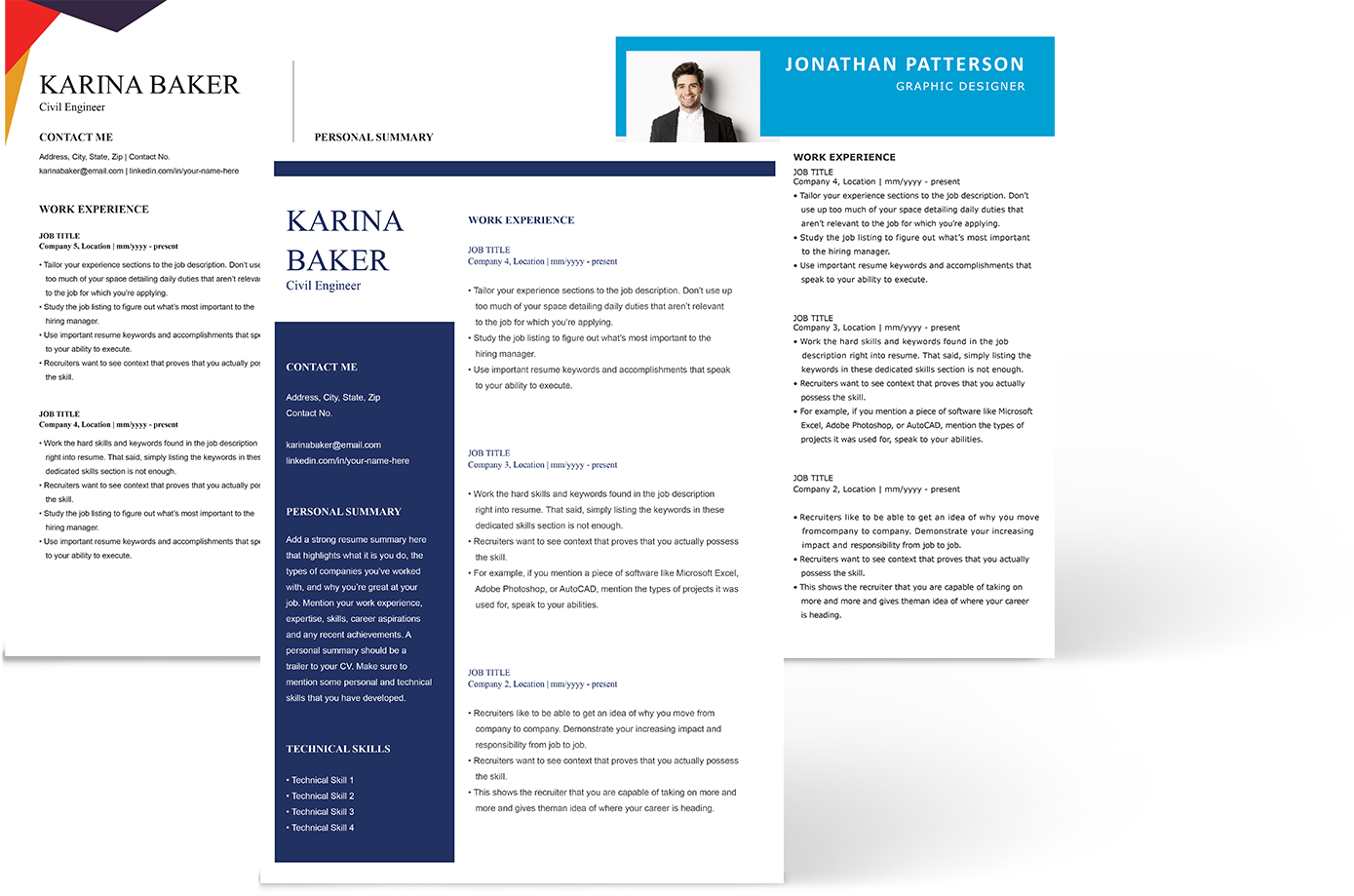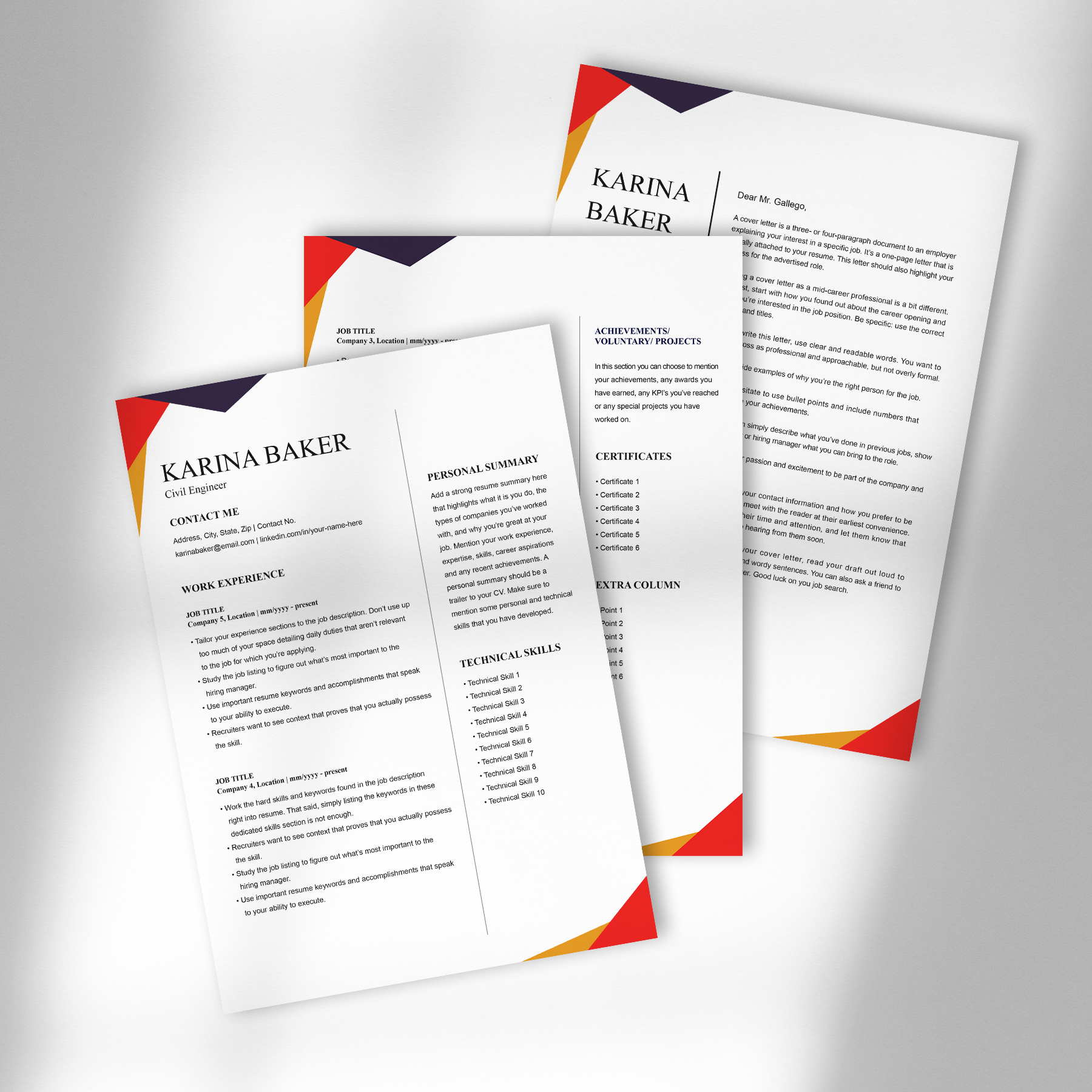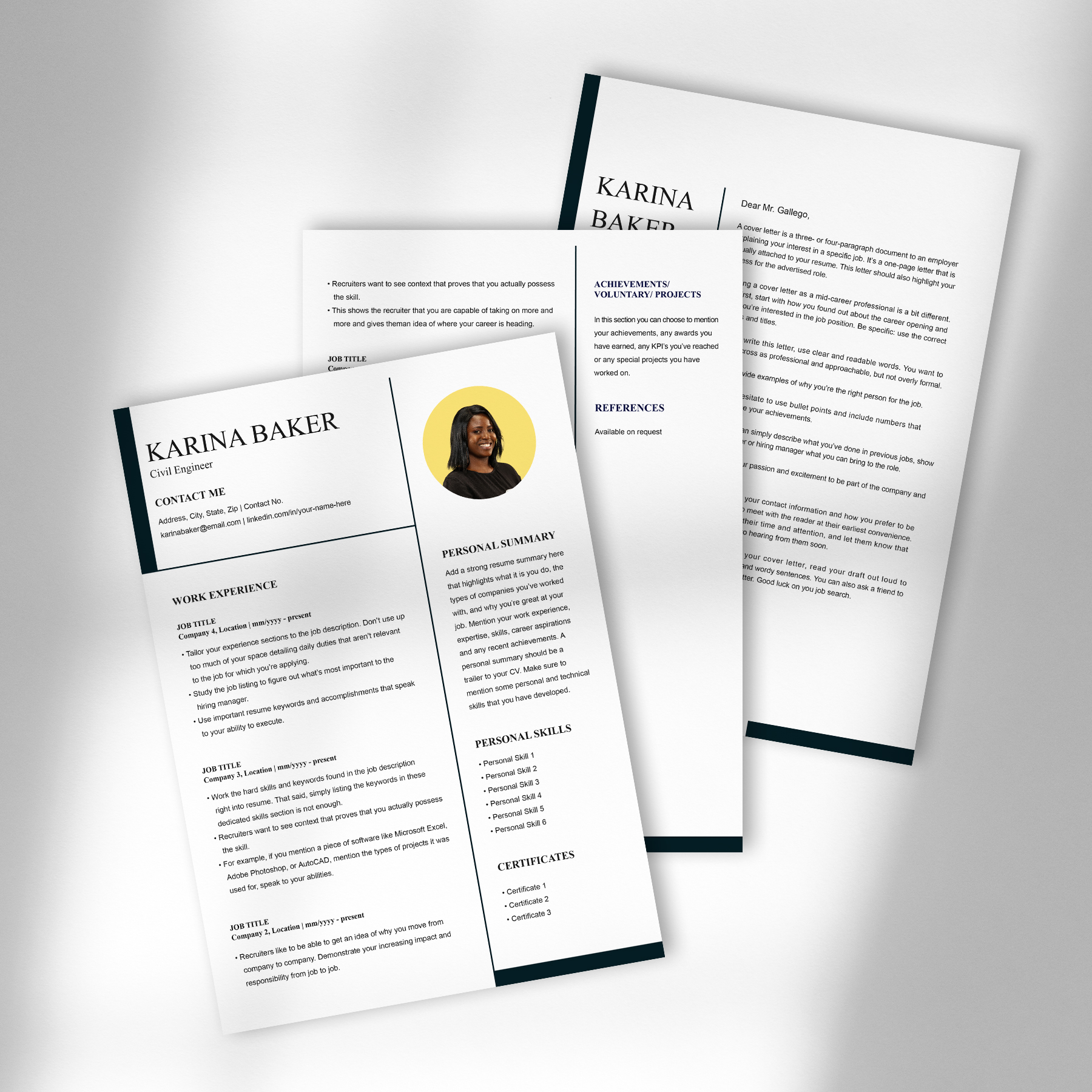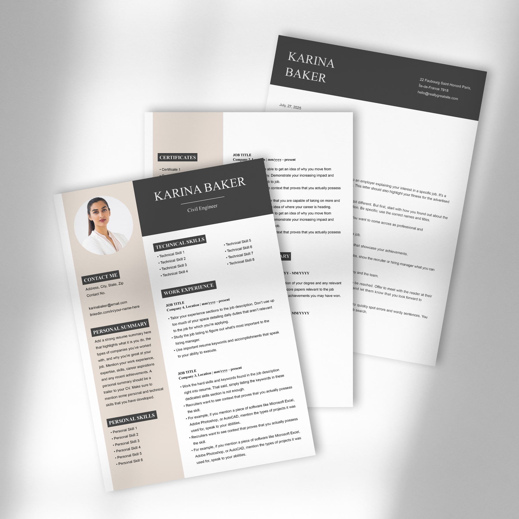 Each template kit has two resume templates – one with photo and one without photo for your ease of access.
