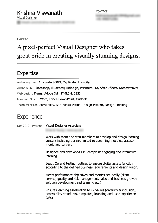 The entire process of conceptualisation, understanding your skillset and delivering your finished resume will be done with Divya over a call.
