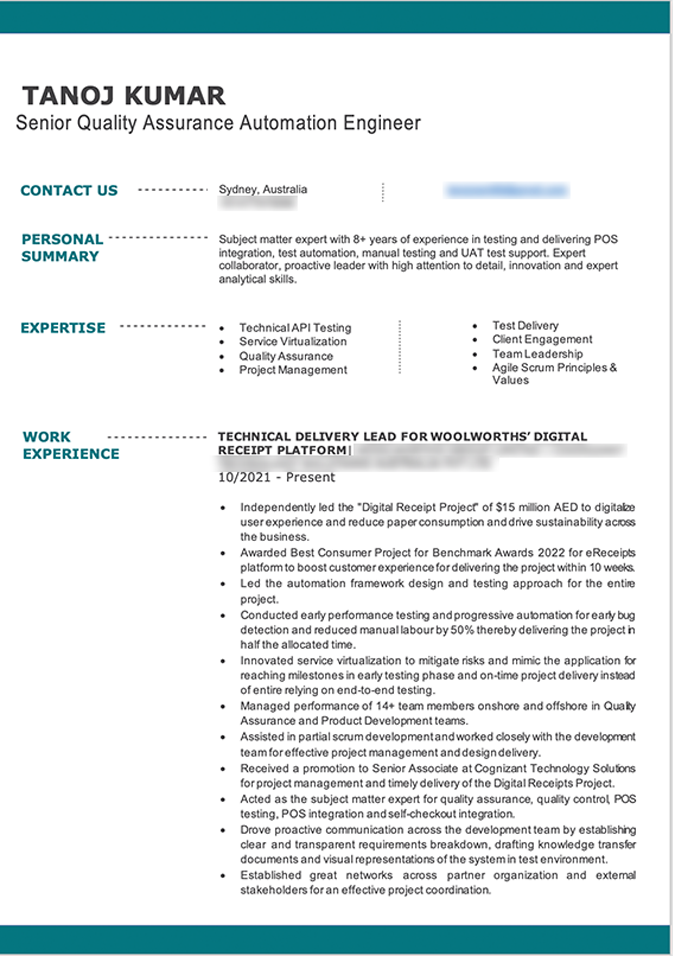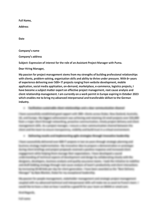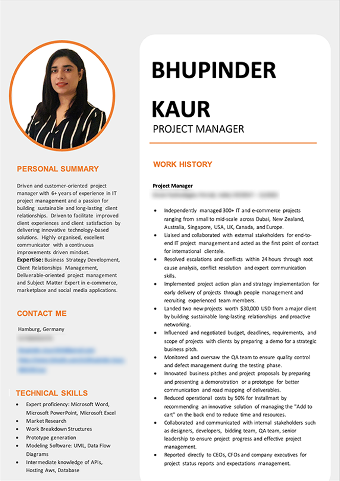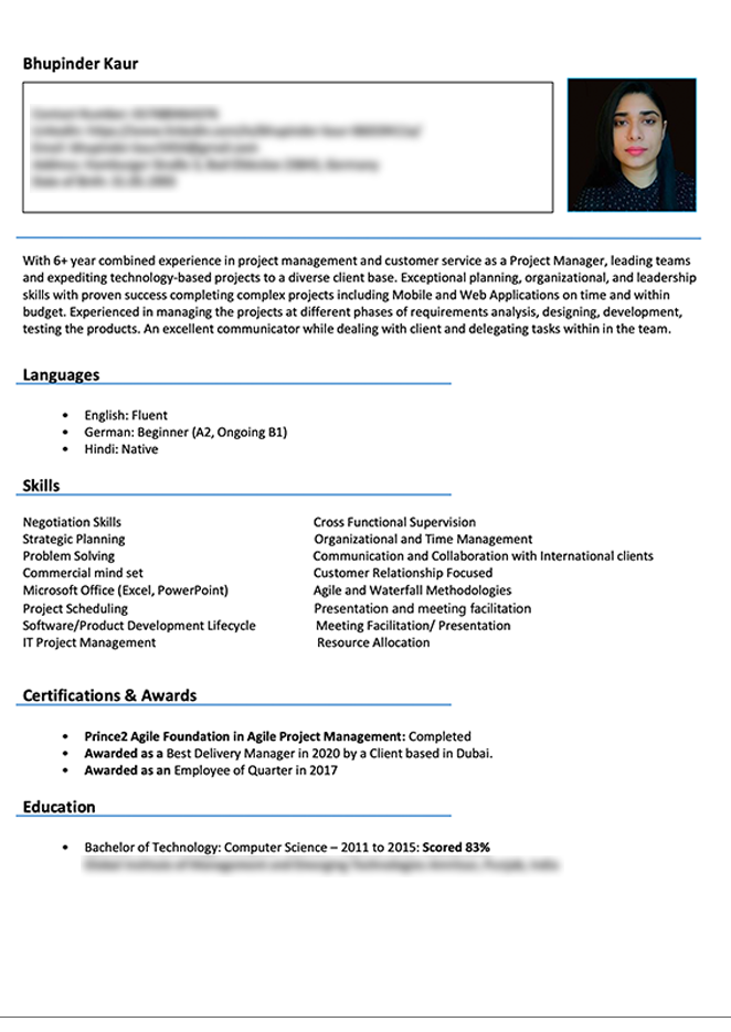 Bhupinder was targeting assistant project manager roles in Germany. Divya has carefully crafter her cover letter to showcase her transferrable skillset from her experience in India. She is working as an IT Project Manager in Hamburg.