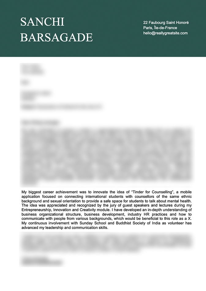 Sanchi's cover letter was written to target HR and business organisation-related roles to transfer her MSc in Organisational Psychologyinto business-related roles in the UK. She is now working as an Office Administrator in the UK.