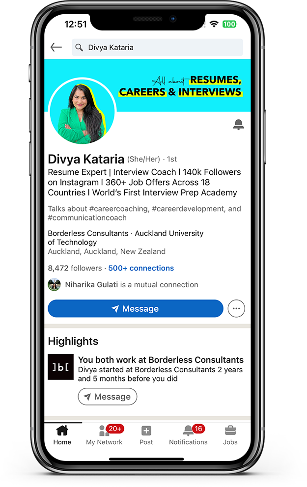 Get your cover letter written by Divya over a zoom call to effectively explain your achievements, initiatives and your story. A cover letter that can persuade a recruiter to shortlist you based and branding, even if you don’t meet 100% of their criteria!