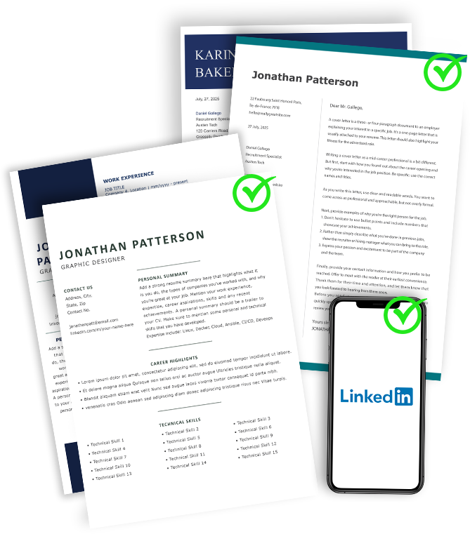 Choose between Resume, Cover Letter and LinkedIn Writing services or bunch them together.
